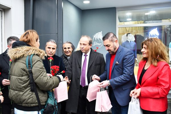 YMZ Özmen Tekstil & YMZ Moda işletmecisi Yılmaz Özmen ve beraberindekiler mesai saati öncesi 8 Mart Dünya Çalışan Kadınlar Günü dolayısı ile çalışan kadınları kabıda karşıladı.